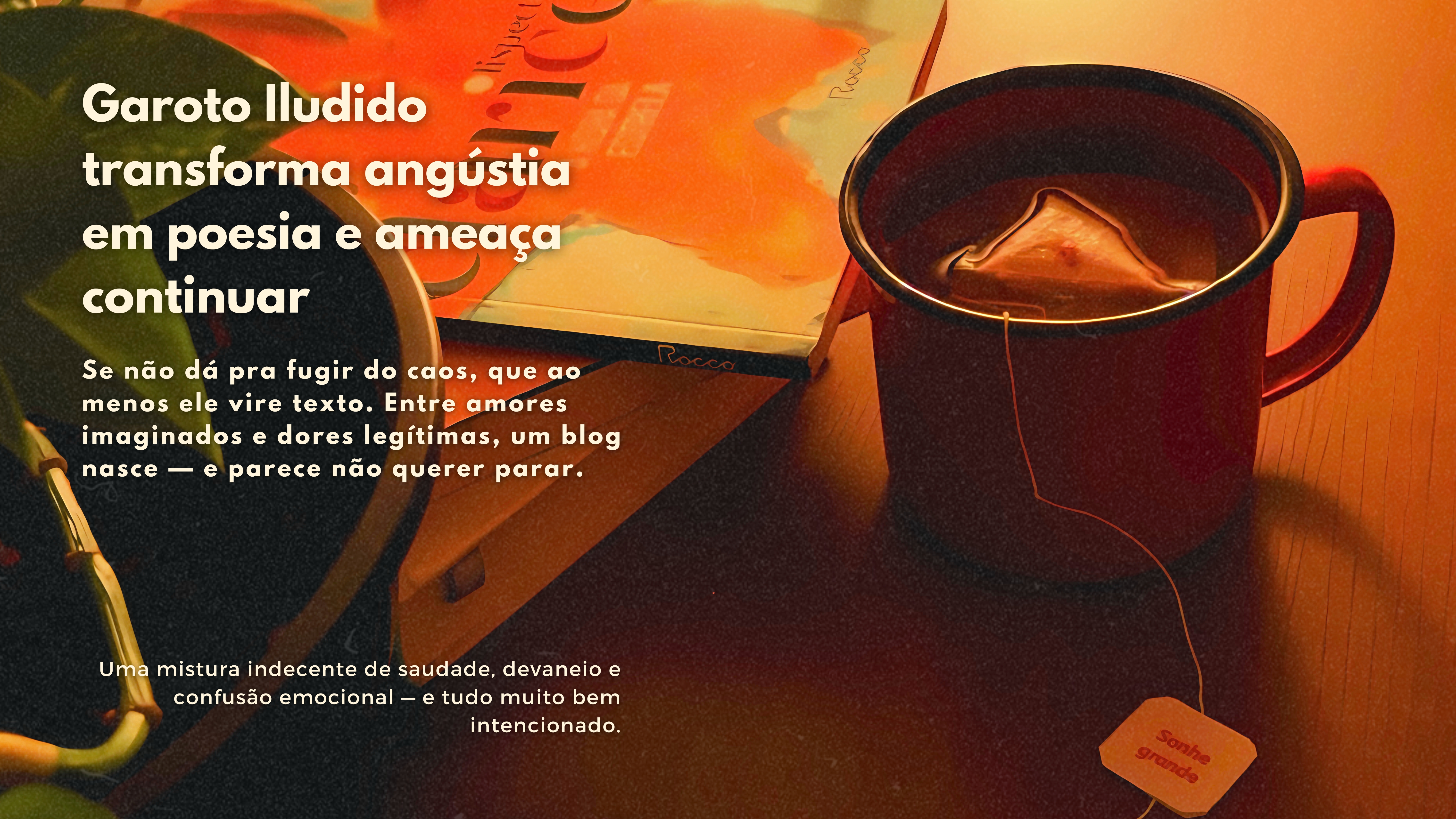Foi bonito manter tudo em segredo. Escrever em silêncio, dançar sozinho na sala, rir de ideias que ainda não tinham leitor. Por meses, esse lugar existiu apenas dentro dele — e talvez justamente por isso tenha ficado tão cheio de alma. Agora, não cabe mais: virou blog, virou mundo. E quem chegou, chegou na hora certa.Jovem desconhecido assina jornal poético e some no mapa